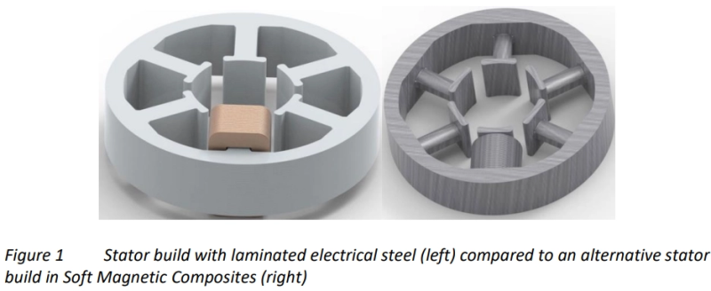 SMC is made with powder particles that are electrically isolated from each other with a thin layer of a ceramic coating. Due to the nature of the ceramic coating SMC is not a ductile material, which can be used to separate the stator from the winding during disassemble at the end of life for the product. As a part of design for disassembly the stator can be crushed and the iron can easily be separated from the windings with a magnetic separator.